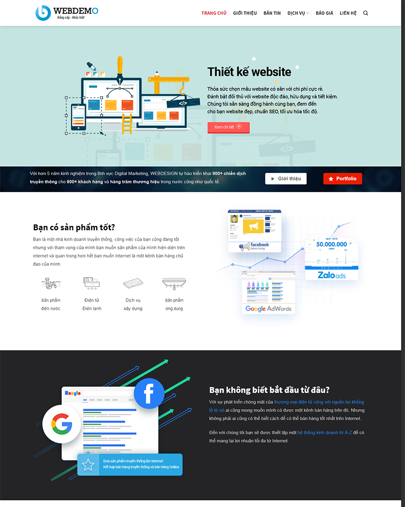 - Giới thiệu dịch vụ chính: Web bán hàng, Web doanh nghiệp, Web SEO